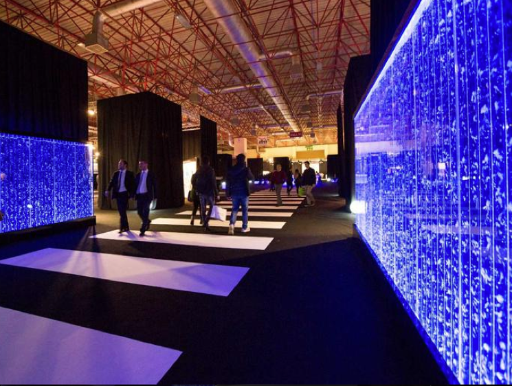 Giriş alanında sağınızda ve solunuzda renklerin değişimleri ile su duvarları, size fuar alanına kadar eşlik ediyordu.