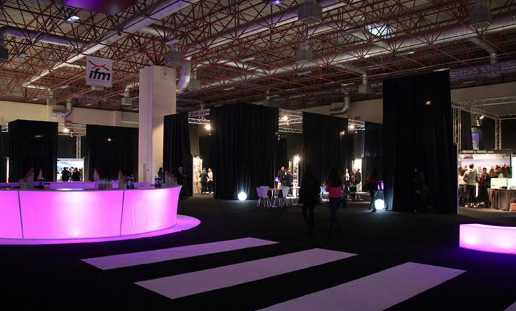 Fuar stantları dörderli gruplar halindeydi. Her grubun ortasında kullanılabilecek bir masa ve dört köşesinde ürünlerini sergiledikleri stantlar vardı. Arkalarında yer alan siyah perdeler ve etrafın loş aydınlatması ile algıyı ürünlerde toplamışlardı.